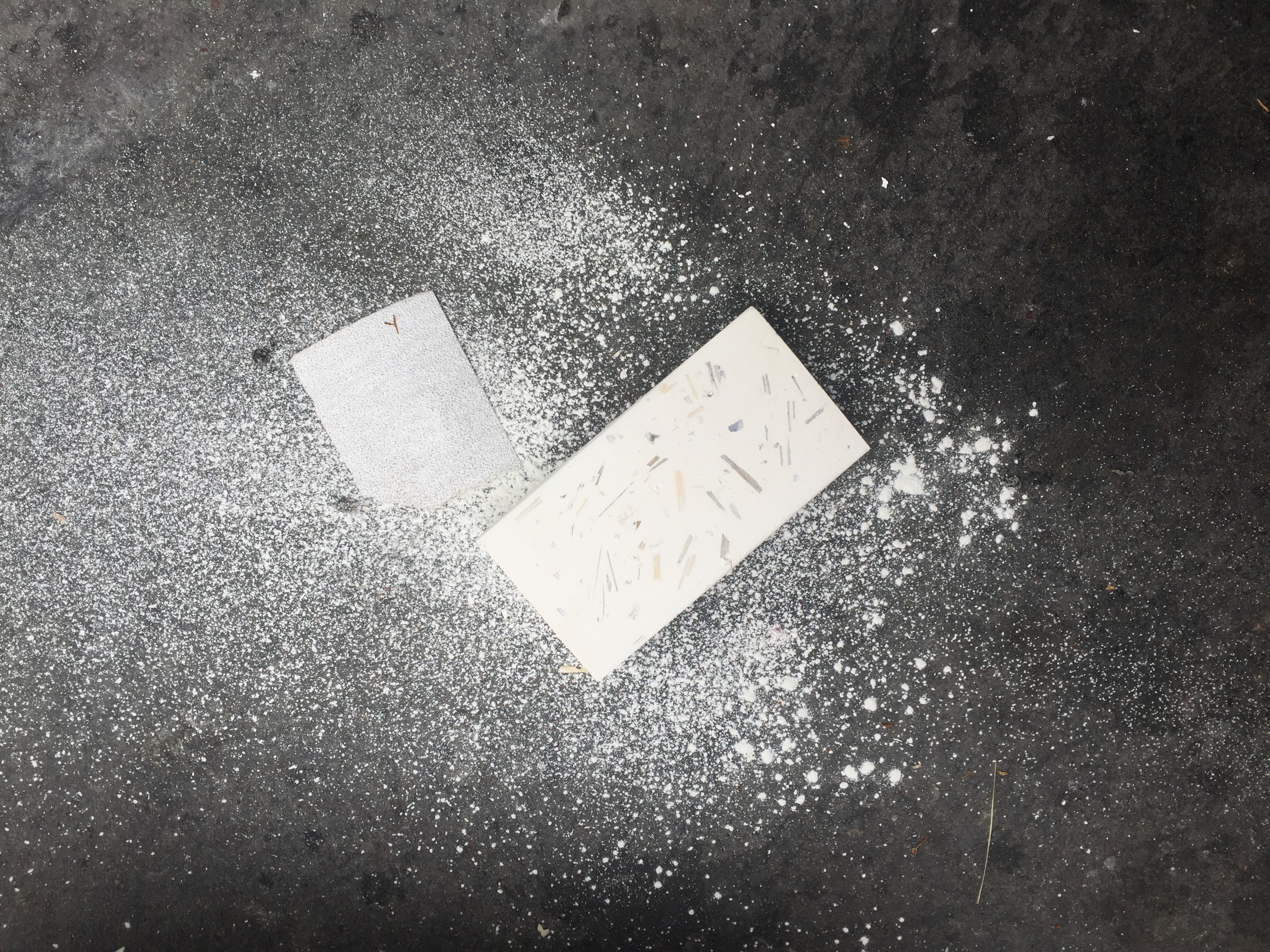 Jouer des caractéristiques d’isolation thermique de la laine de chanvre pour le développement d’une série de dalles de sol embossées. Superposition d’un textile double face chanvre teint naturellement et lin PLA avec de laine de chanvre comêlée PLA, assemblage par transfert thermique.